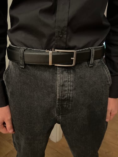 Ya no estarás limitado por los agujeros. Conduciendo, en la mesa o en público: libérate ajustando tu cinturón gracias al práctico botón. ¡Te encantará!