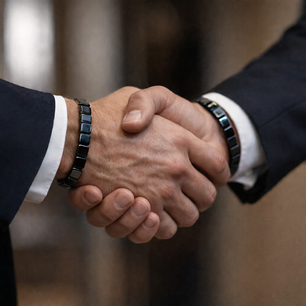 No es una joya — es fuerza masculina para llevar puesta, activada en el momento en que toca la piel. Sin pastillas, sin artificios. Solo poder magnético continuo.